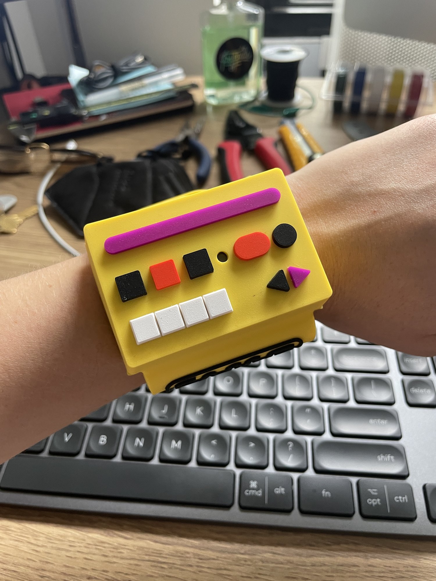To ensure ease of use during the Cosmic CAMP experience, we designed the space communicator with a silicone material, making it effortless to pop the sensor in and out as campers progress through the activities. To add a fun touch, we utilized UV printing to color the buttons on top, which also allows for coloring of the edges.