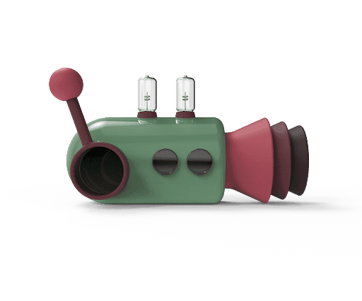These requirements and the design of the shrink ray informed the design of the transponder, as both needed to share a common visual language.