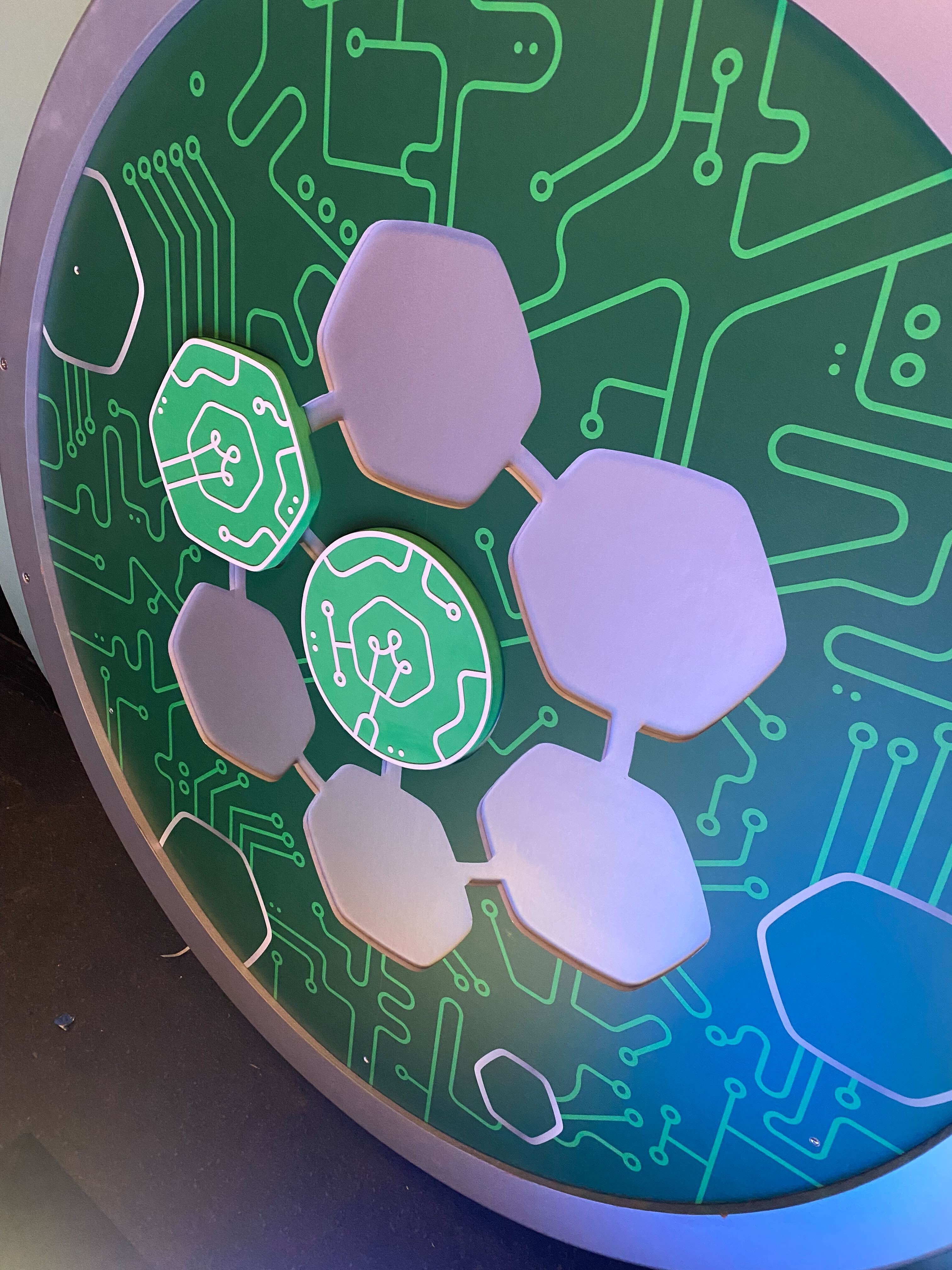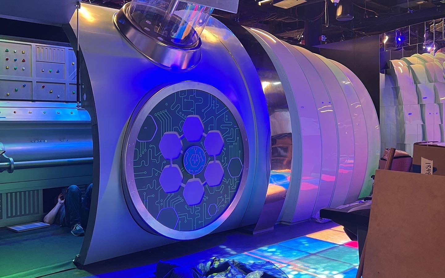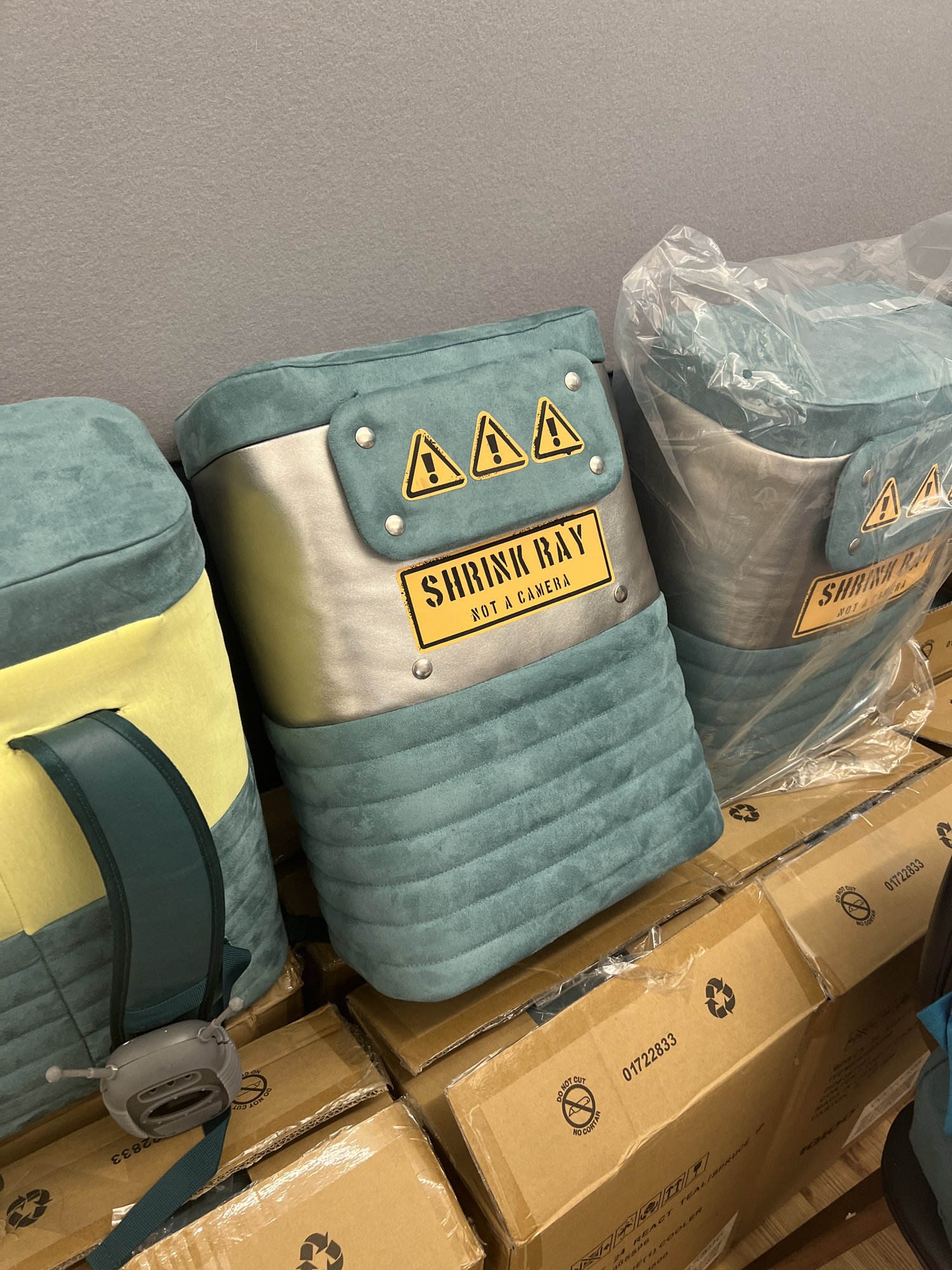 In addition to the bag, we were also responsible for designing the microchips that the kids would collect. To ensure safety, we decided to make them out of EVA foam as they would be falling from the ceiling at certain points in the experience. The microchips also had a metal disk on the inside, allowing kids to stick them onto the wall of the gigantic shrink ray to complete the circuit and fix it.