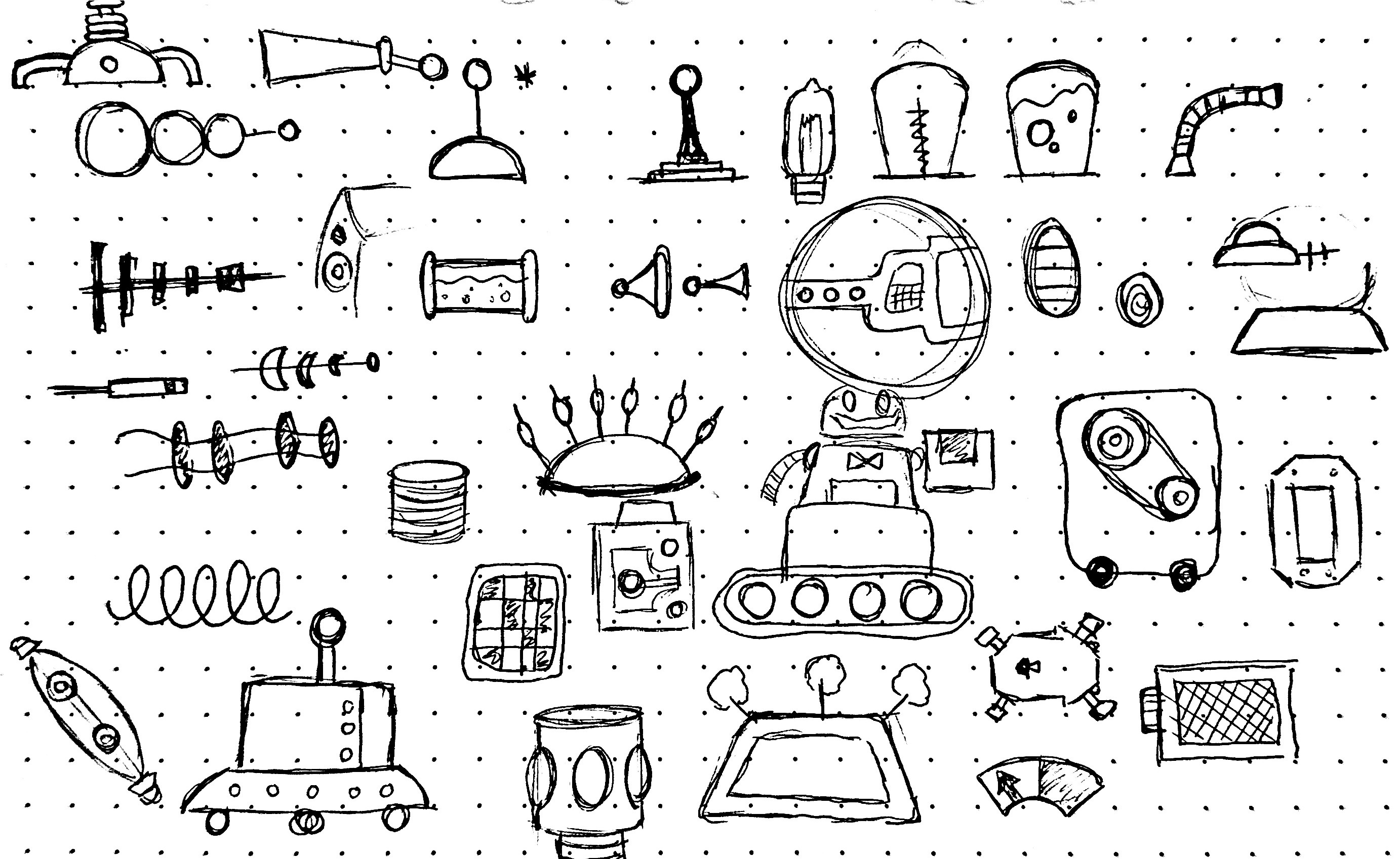 To kick off the project, I began by sketching out various details and components of Gyro Gearloose's world. By incorporating this visual language into the design, I would be able to seamlessly integrate it into the overall experience and make it feel like a natural part of their world.